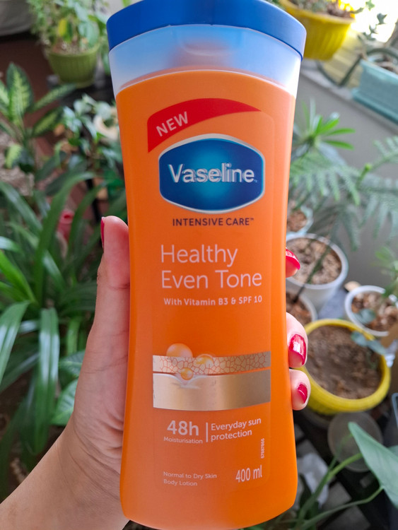 لوسیون بدن Healthy even tone وازلین حاوی ویتامین B3 و Spf10 مرطوب و نرم کننده یکنواخت سازی رنگ پوست مناسب پوست خشک و نرمال حفظ رطوبت پوست تا ۴۸ ساعت حجم 400 میل محصولی از آفریقای جنوبی